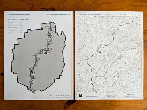 Published by Beechwood Books in 2025, 28 pages. The only map set for the entire 240-mile route. 1:40,000 scale, 100-foot contour intervals, 8.5" x 11.0", 5.1 ounces. Designed for use with Blue Line to Blue Line.